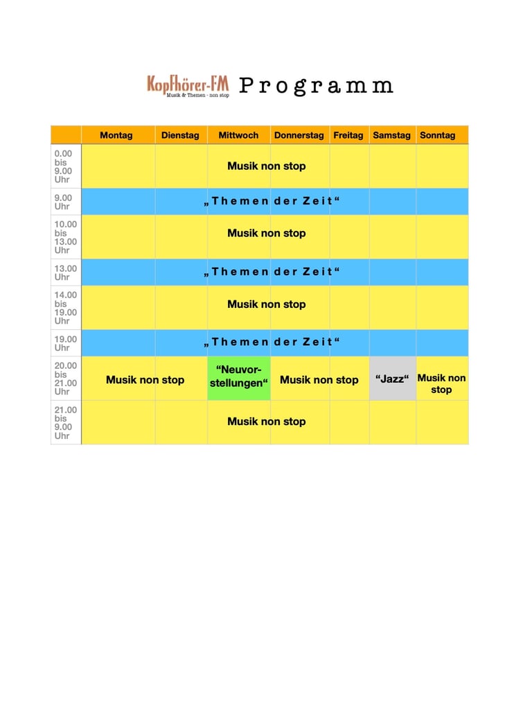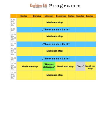 “Musik non stop“: Songs nach der aktuellen Standard-Playlist von Kopfhörer-FM in der Reihenfolge: